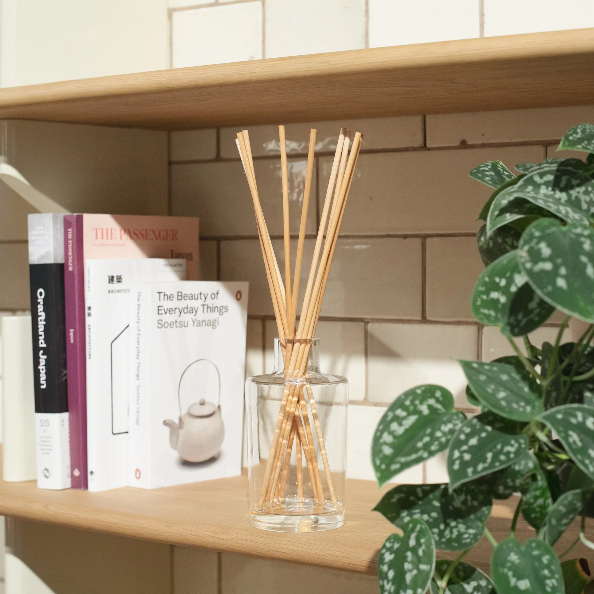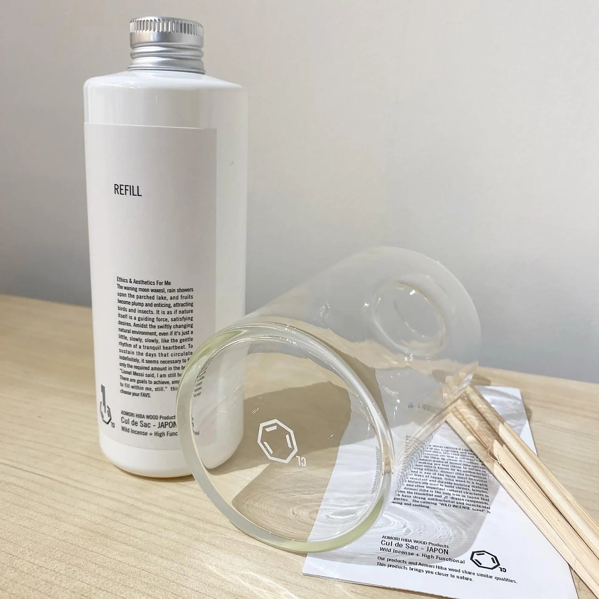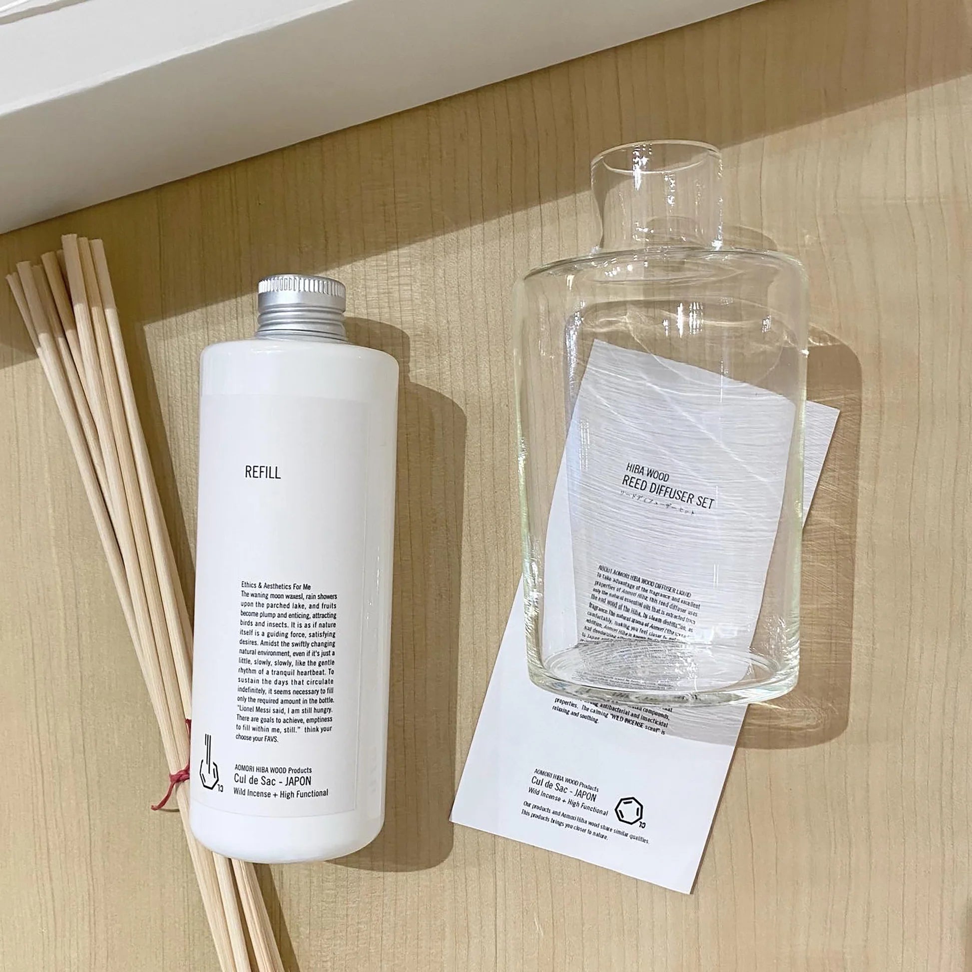 Dyfuzor zapachowy delikatnie wypełnia wnętrze aromatem pochodzącego z prefektury Aomori drzewa Hiba.