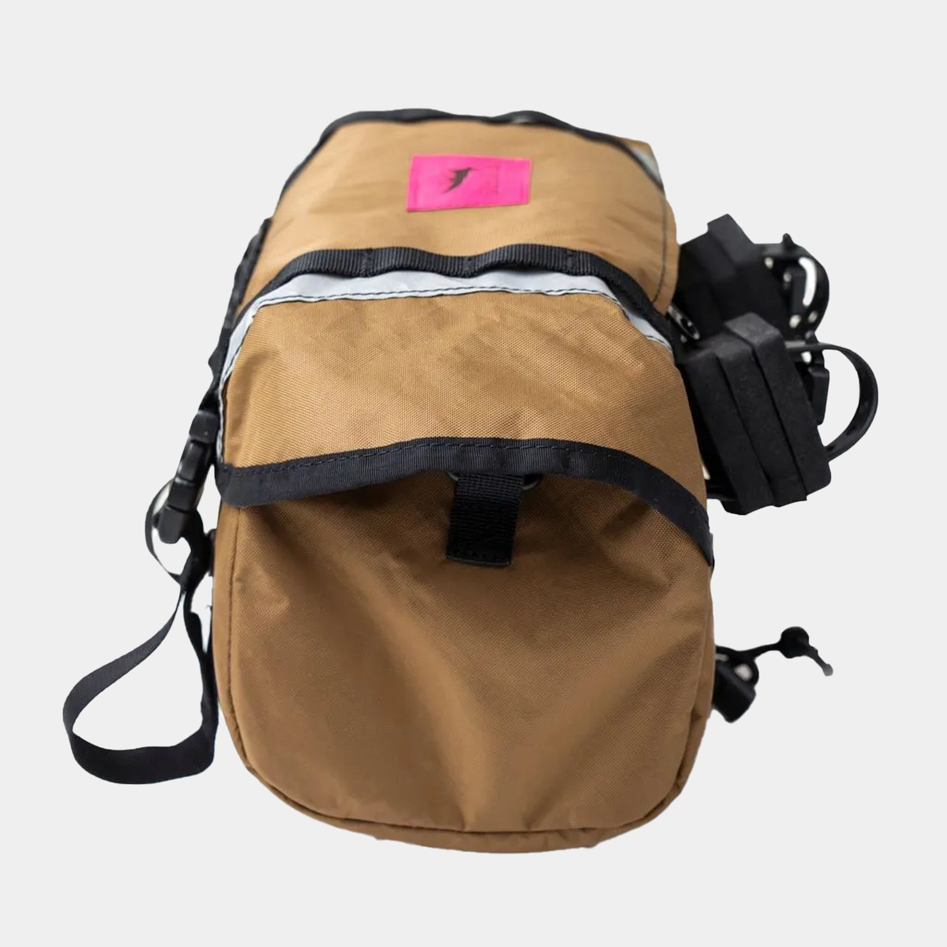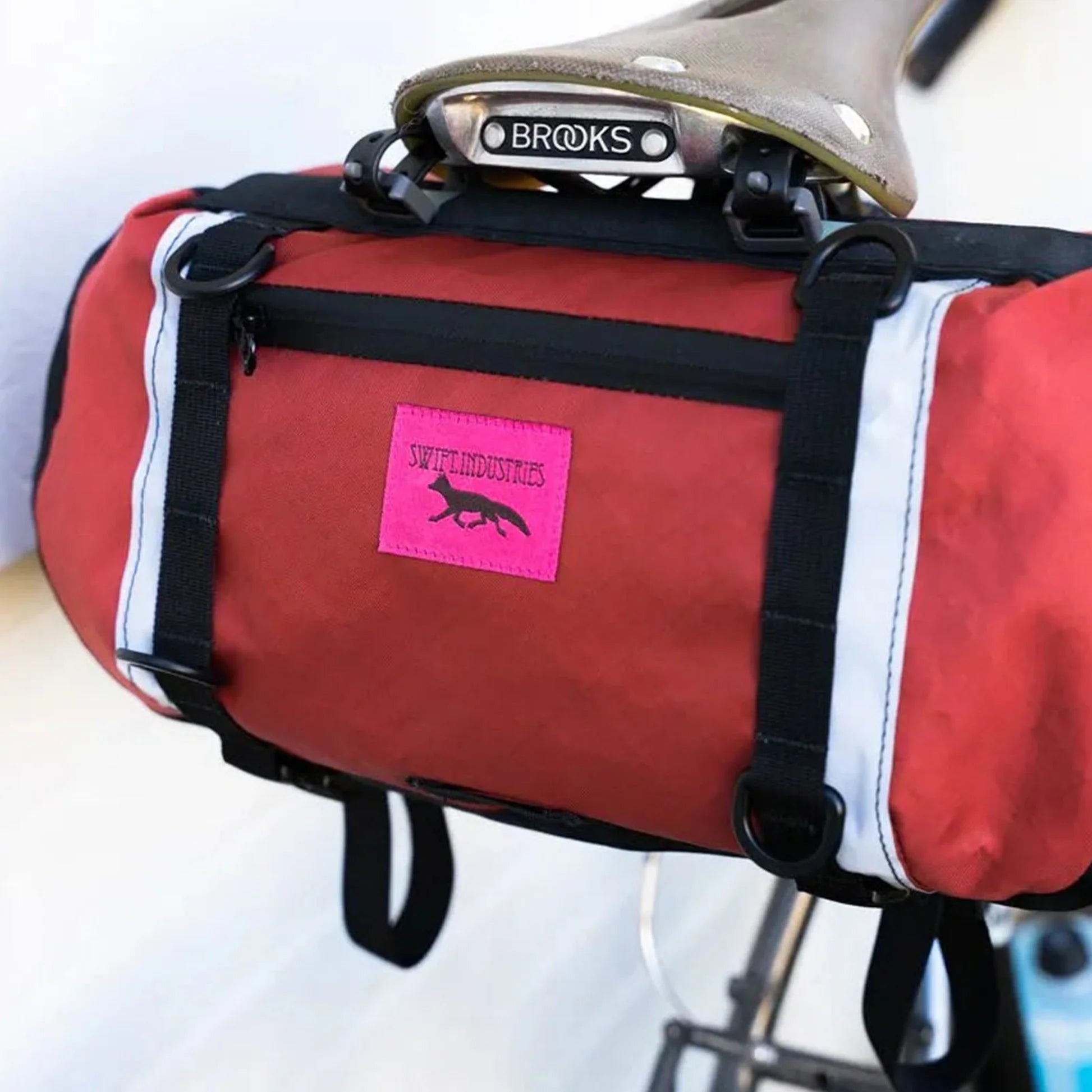 Swift Industries Catalyst to wszechstronna torba o pojemności 7,5 litra, przeznaczona do zamocowania na kierownicy lub siodełku, wykonana z poliestru pochodzącego z recyklingu. Idealnie nadaje się na przejażdżki po szutrze, wycieczki rowerowe oraz do codziennego użytku. Jako mniejsza wersja torby Zeitgeist, doskonale sprawdza się w przypadku węższych kierownic lub mniejszych ram.